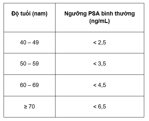 Nam giới khỏe mạnh thường có PSA < 4 ng/mL.