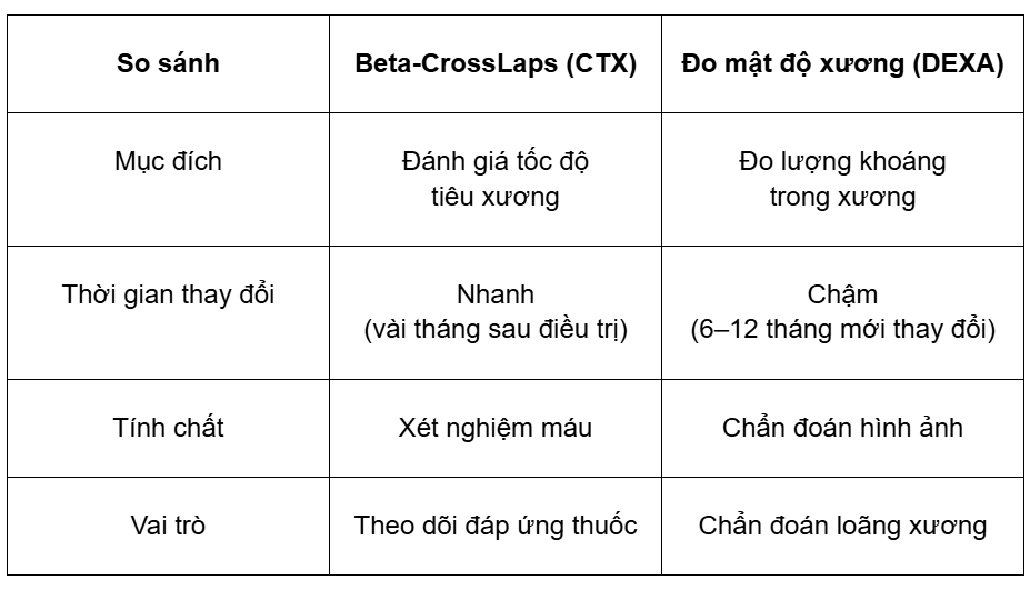 Vì vậy, khi theo dõi bệnh loãng xương, bác sĩ thường kết hợp cả hai để có đánh giá toàn diện nhất.